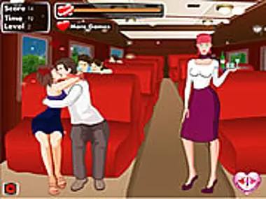Help couple to kiss without getting caught by passengers or hostess in the train.