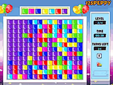 You have to change all the blocks on the board into the same color. Click the colors on the board on top to change the colors of the adjacent blocks.